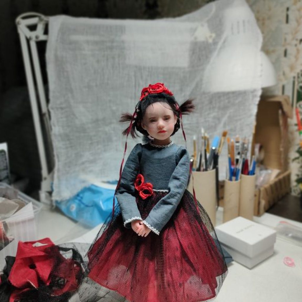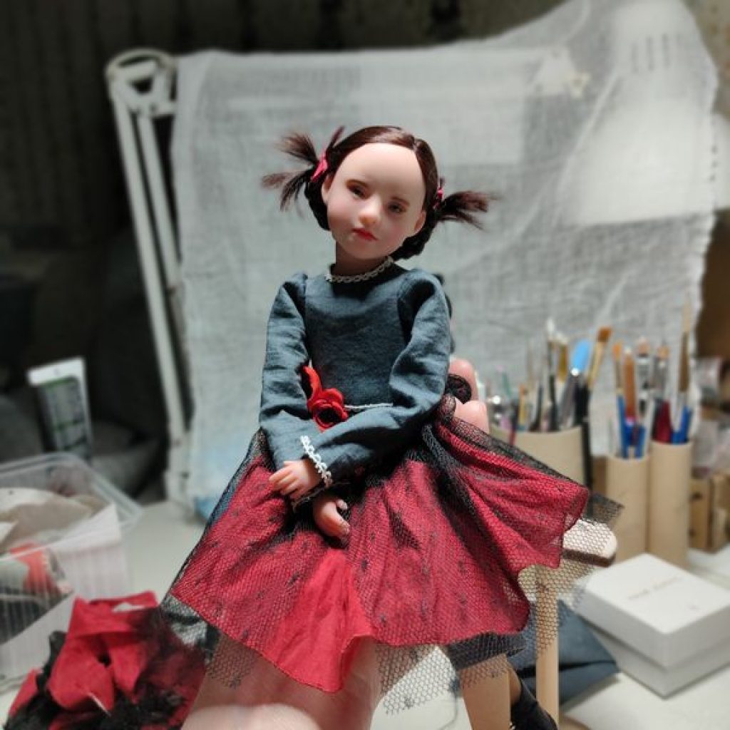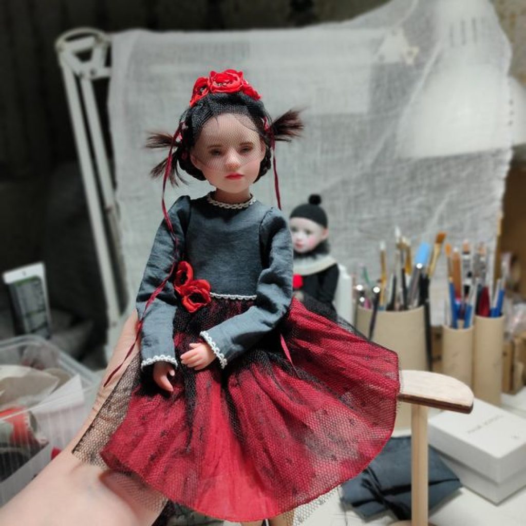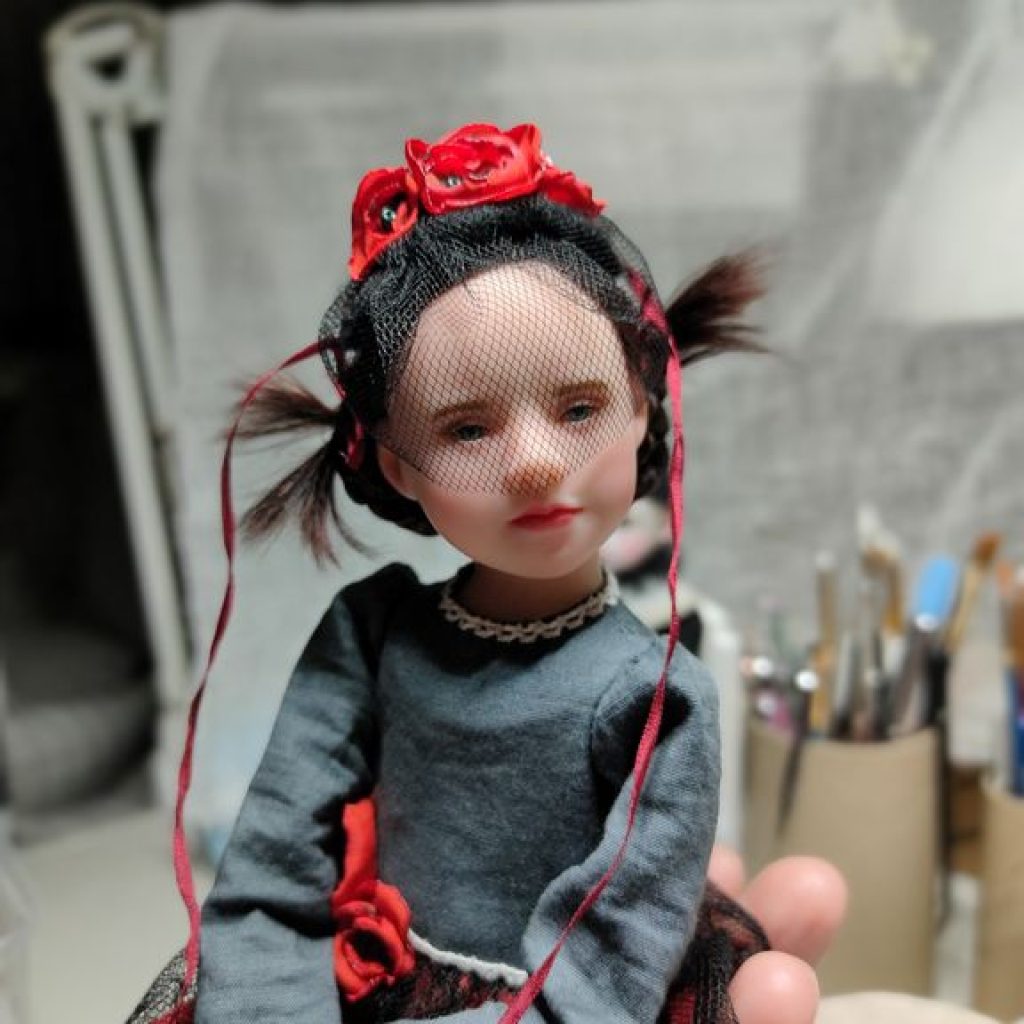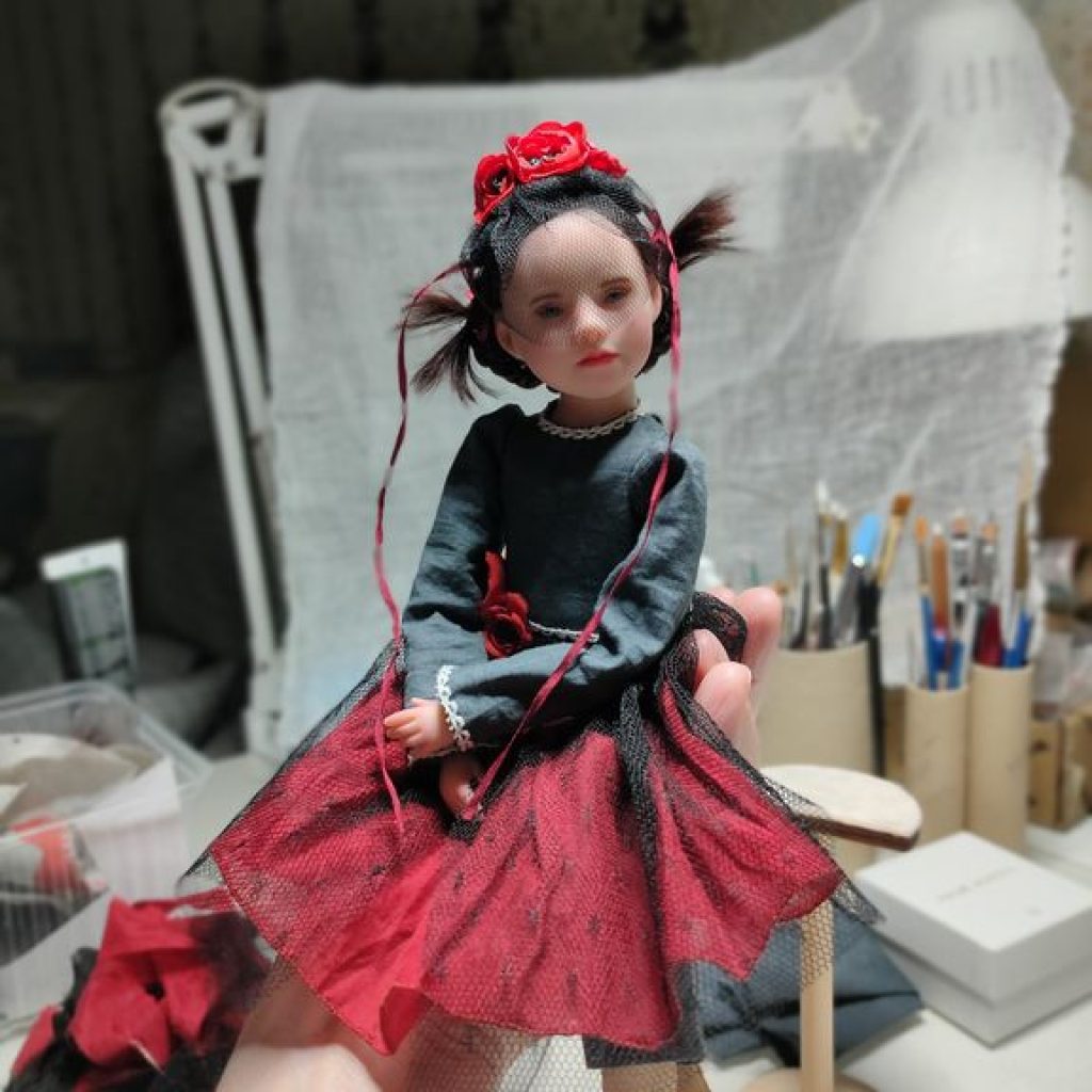 Вот такая она. Такой захотела быть. Необычной, яркой. Девочка очень подвижная, любит фотографироваться и позировать. Одежда не снимается. Шляпку можно снять и поменять прическу тоже можно.